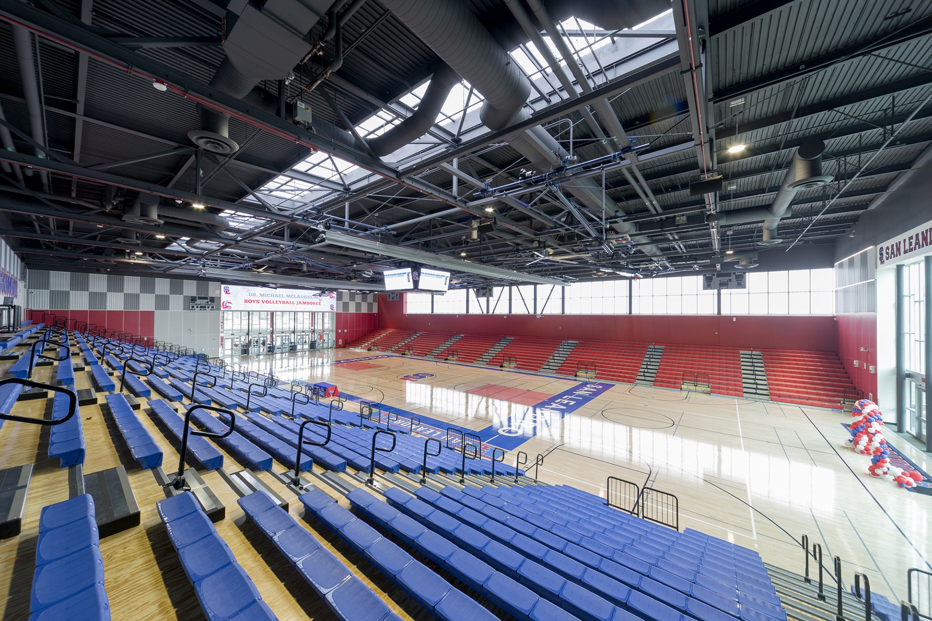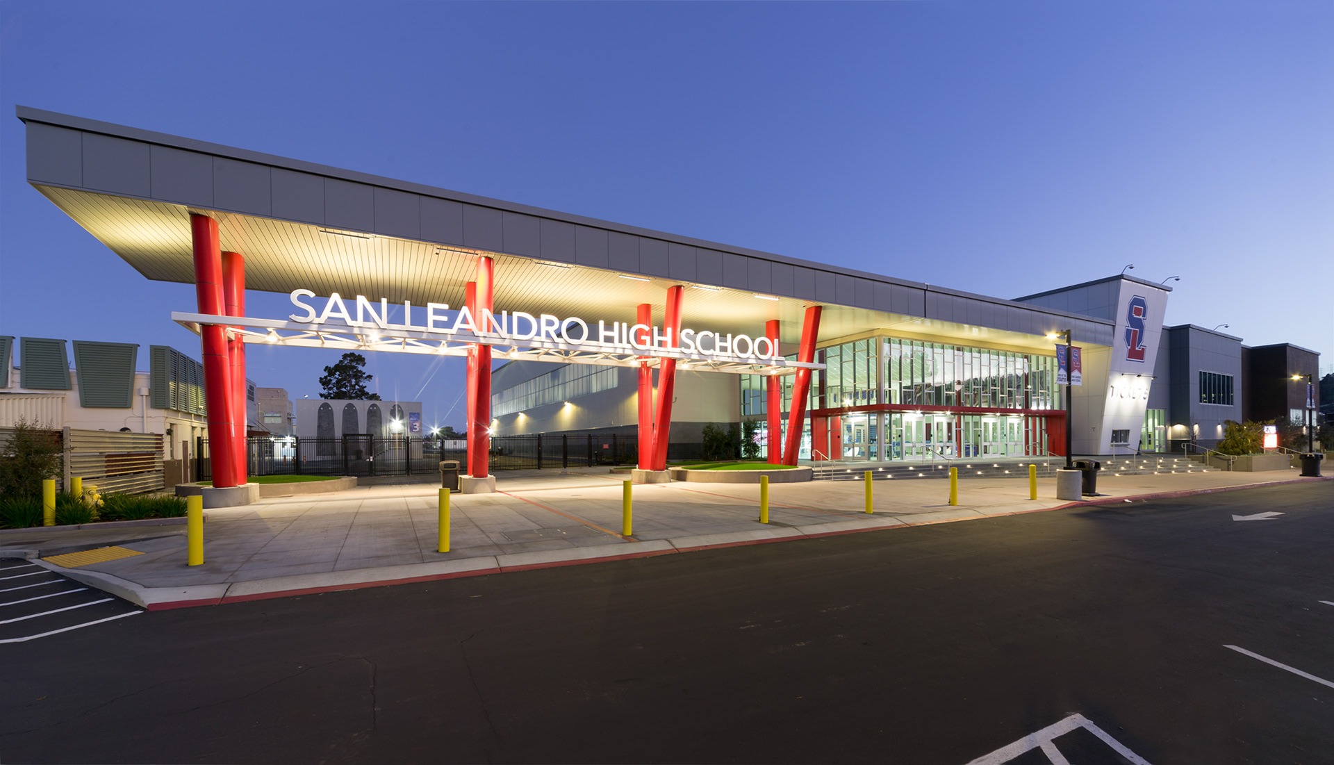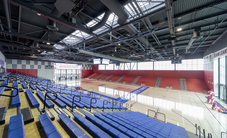 The SLHS Gymnasium is a state-of-the-art facility replacing the school’s aging gym that features three full-size basketball courts, modern locker rooms, a weight room, practice areas, and seating for up to 3,000 spectators—making it one of the largest high school gyms in the Bay Area. With advanced amenities like digital signage, LED scoreboards, and telescoping bleachers, the gym is built to support both athletic excellence and large-scale community events. Completed in 2025 this facility offers students and the broader San Leandro community a top-tier athletic and events hub for generations to come.