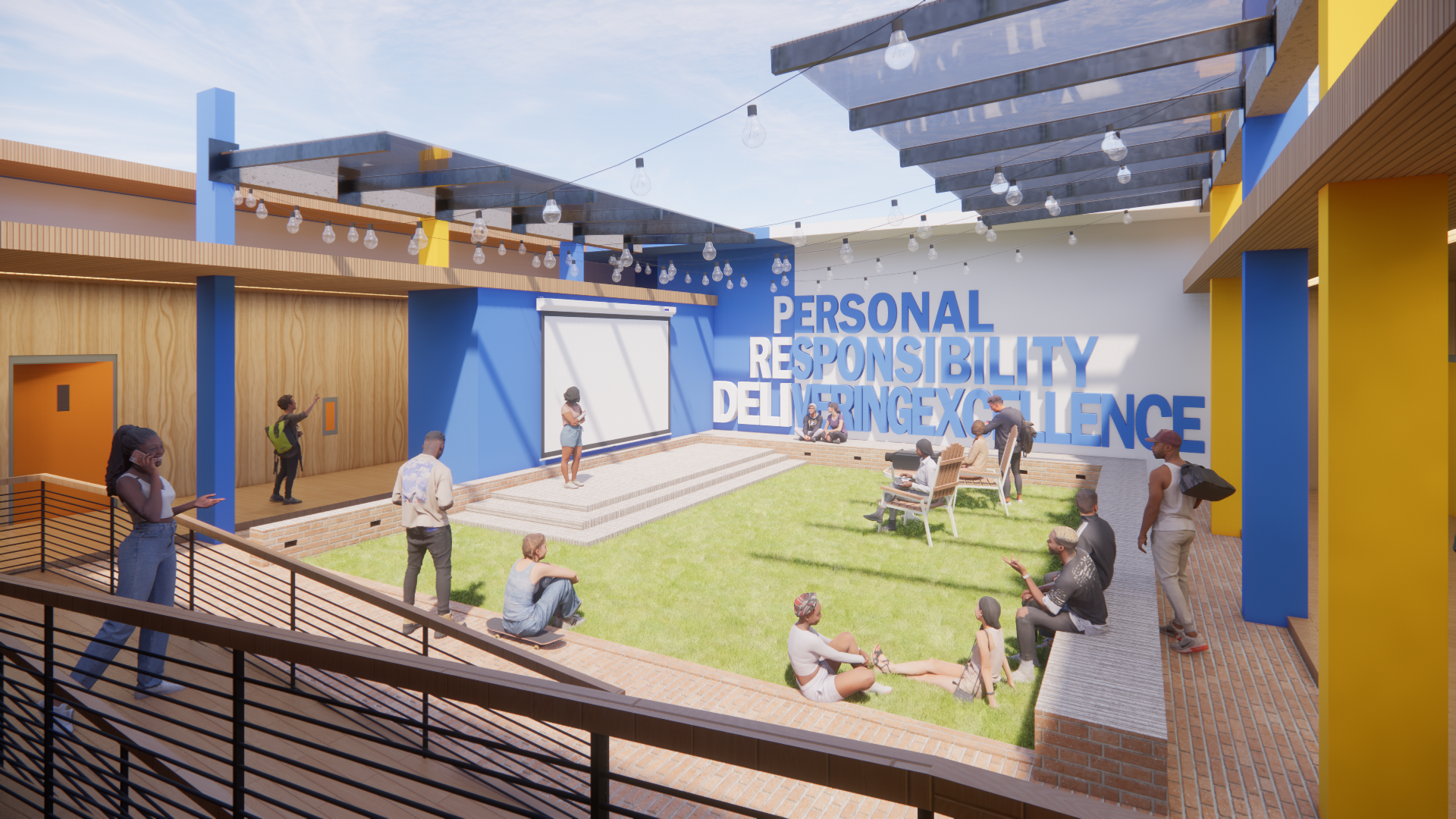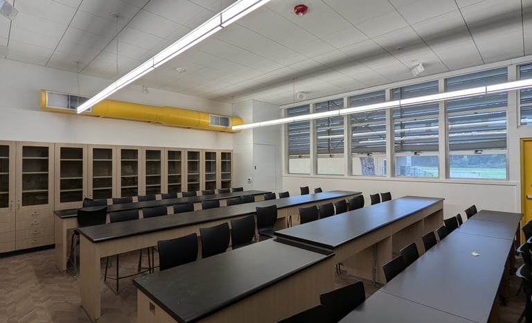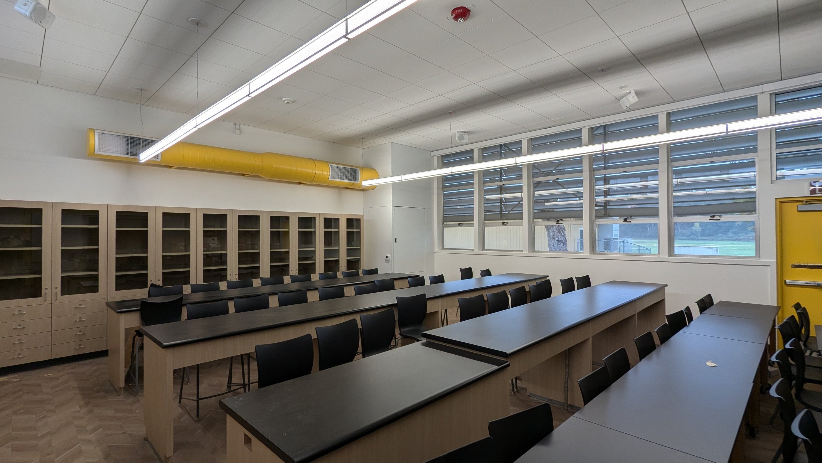The Hayward High School modernization is a multi-phased comprehensive modernization project that involves renovated classroom buildings, upgraded HVAC systems, a new outdoor amphitheater, improvements to the multipurpose building and stage, major gymnasium renovations and enhanced campus security.