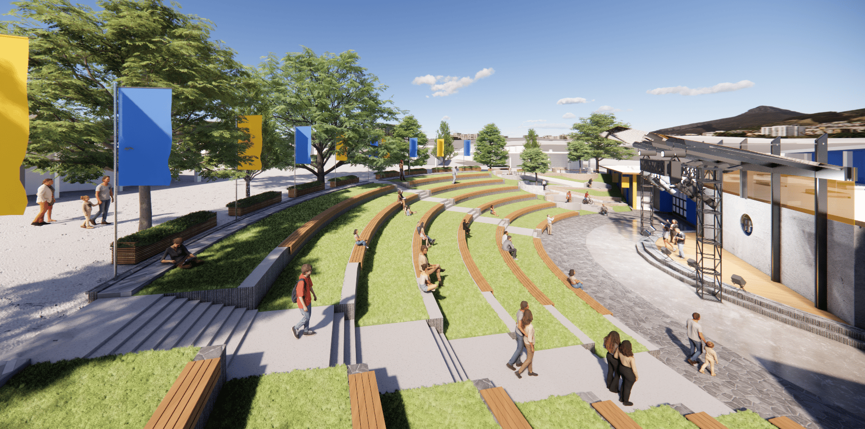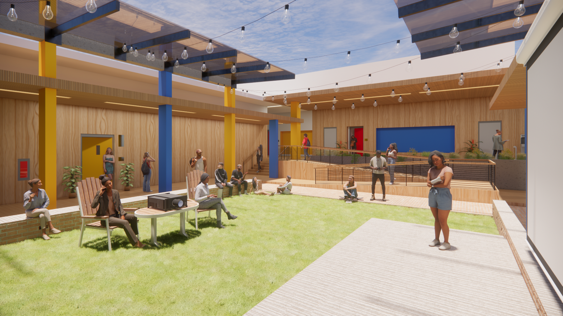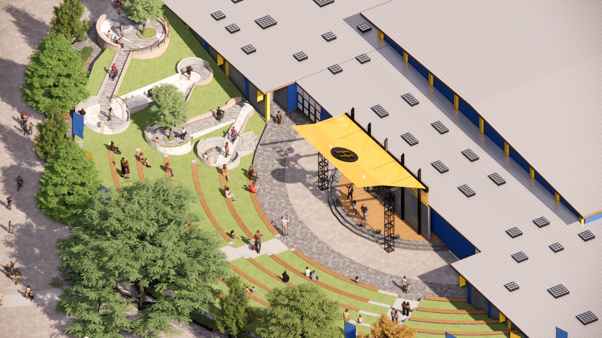 The Hayward High School modernization is a multi-phased comprehensive modernization project that involves renovated classroom buildings, upgraded HVAC systems, a new outdoor amphitheater, improvements to the multipurpose building and stage, major gymnasium renovations and enhanced campus security.